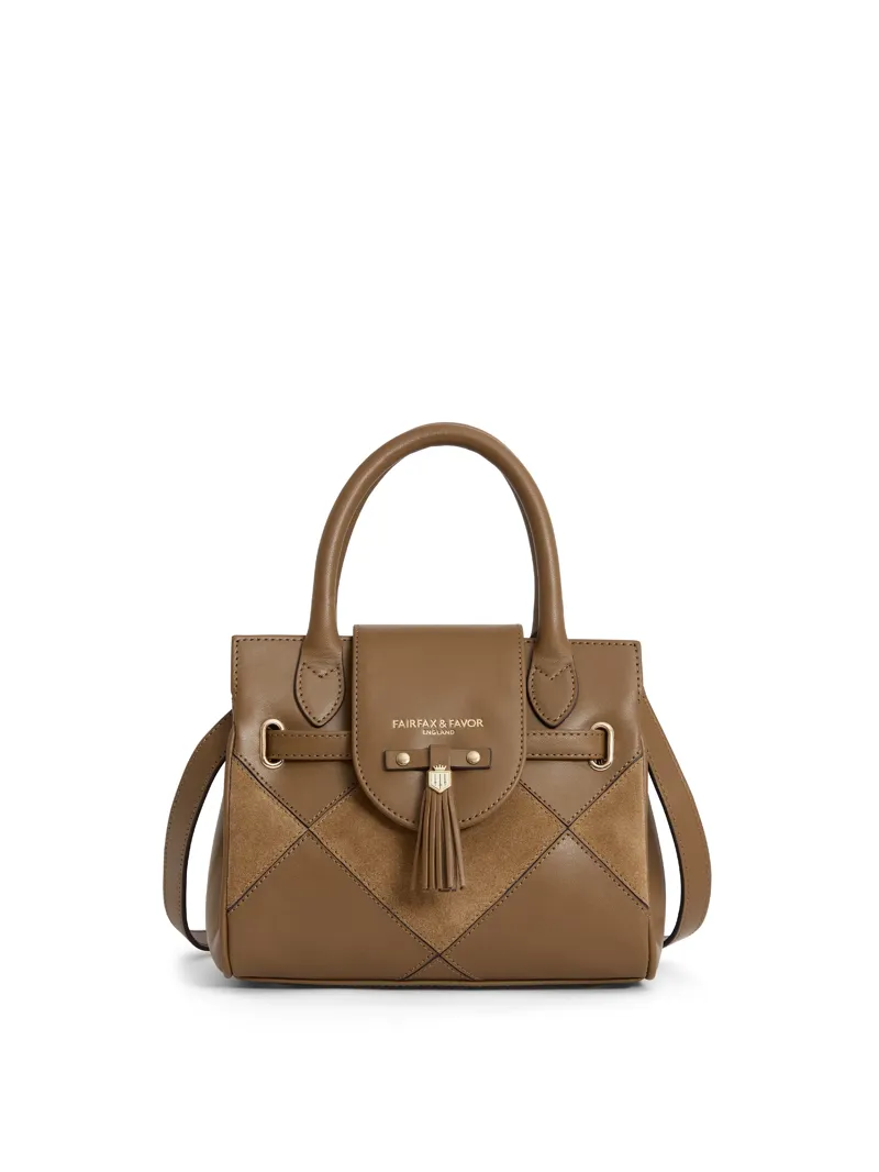 Fairfax and Favor Mini Windsor Harlequin Handbag - Tan Suede