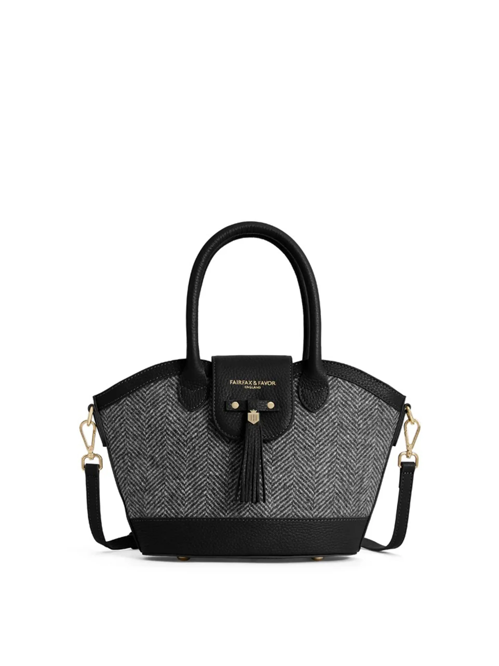 Fairfax and Favor Mini Windsor Herringbone Tote - Black Leather