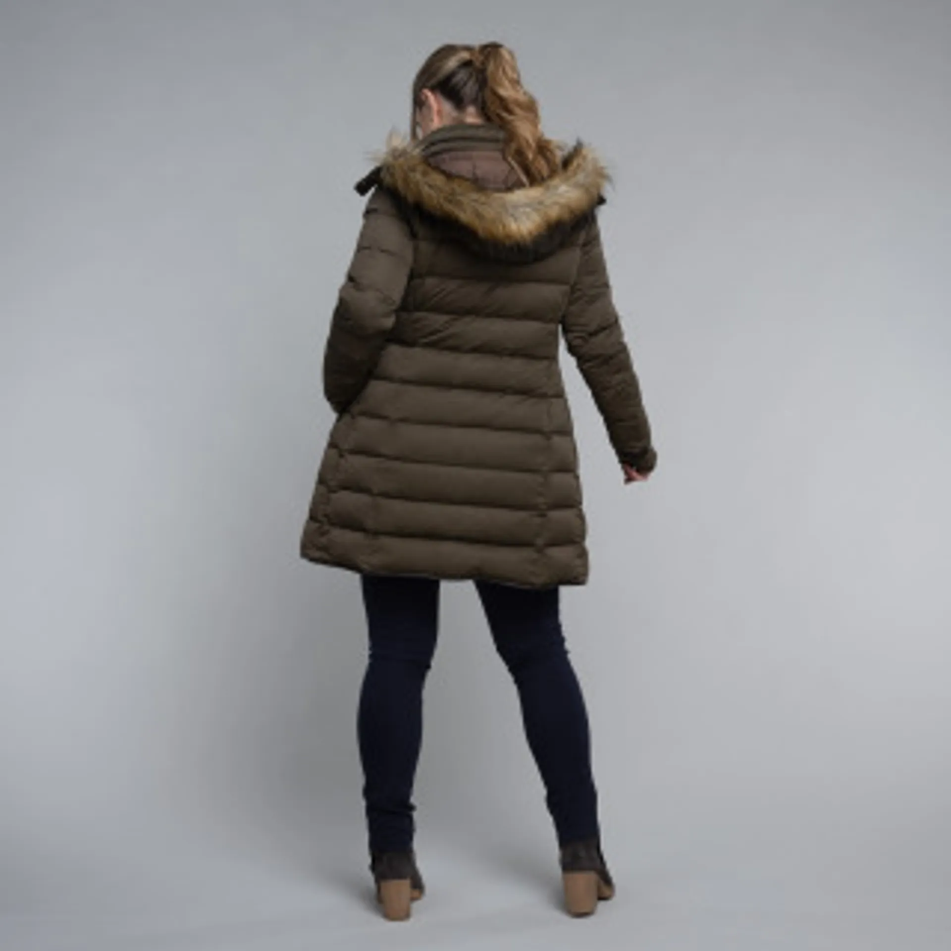 • Faux fur trim on detachable hood