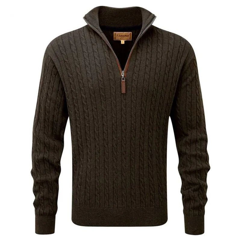 Schoffel Cotton Cashmere Cable 1/4 Zip Jumper Loden Green