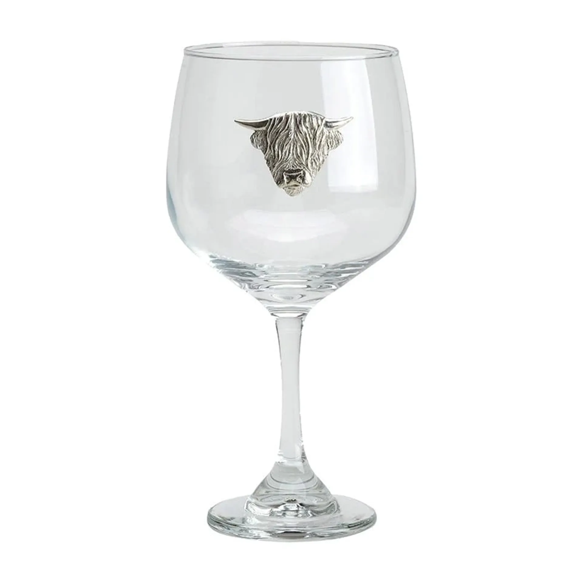 The Bisley Gin Glass is a traditional, stemmed balloon glass with a bowl-style design. Made from high-quality glassware, it features a beautifully crafted pewter animal emblem on the front.