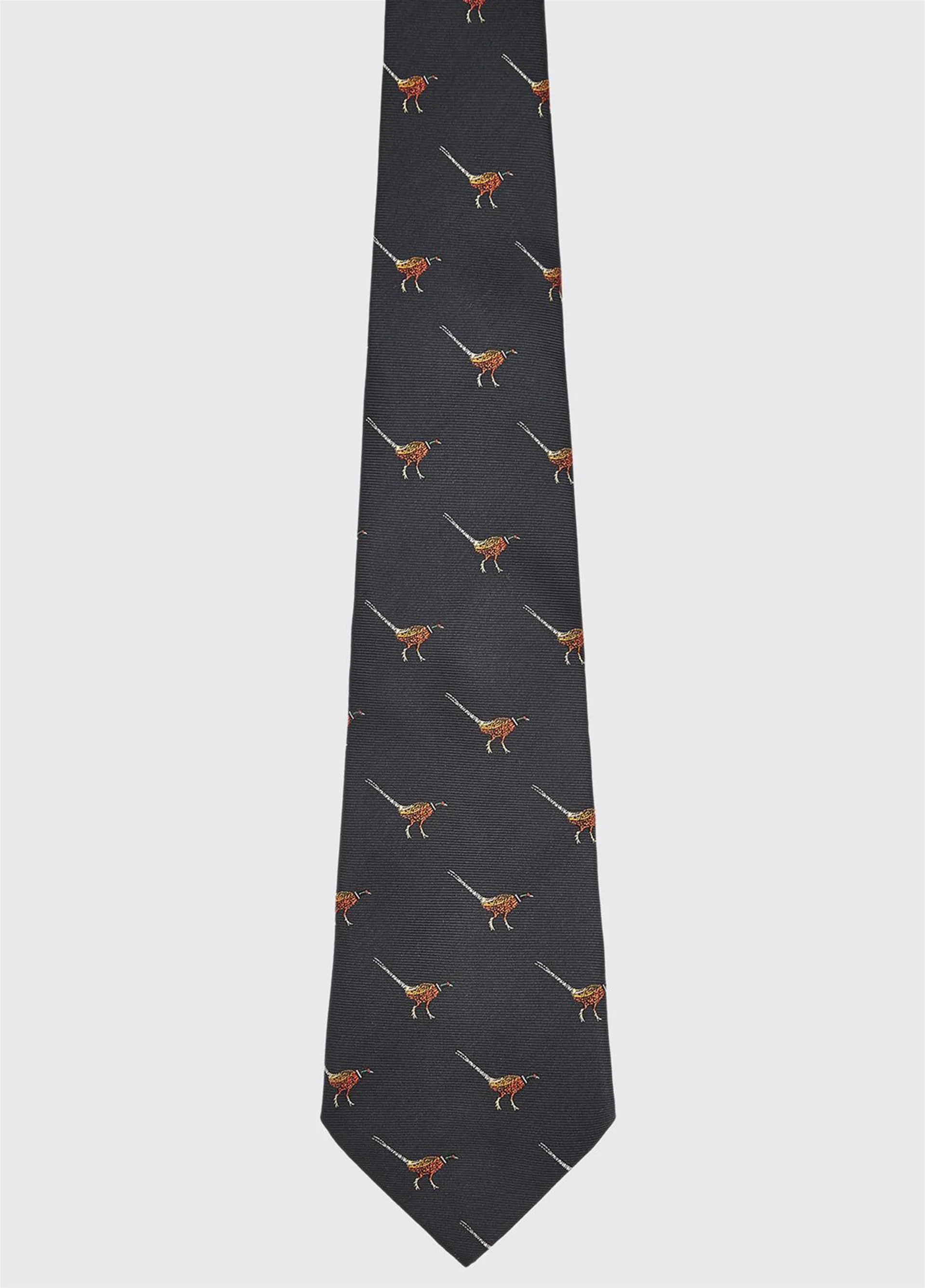 The Madden silk tie is 100% silk and woven with a repeated pheasant motif, perfect for any occassion.