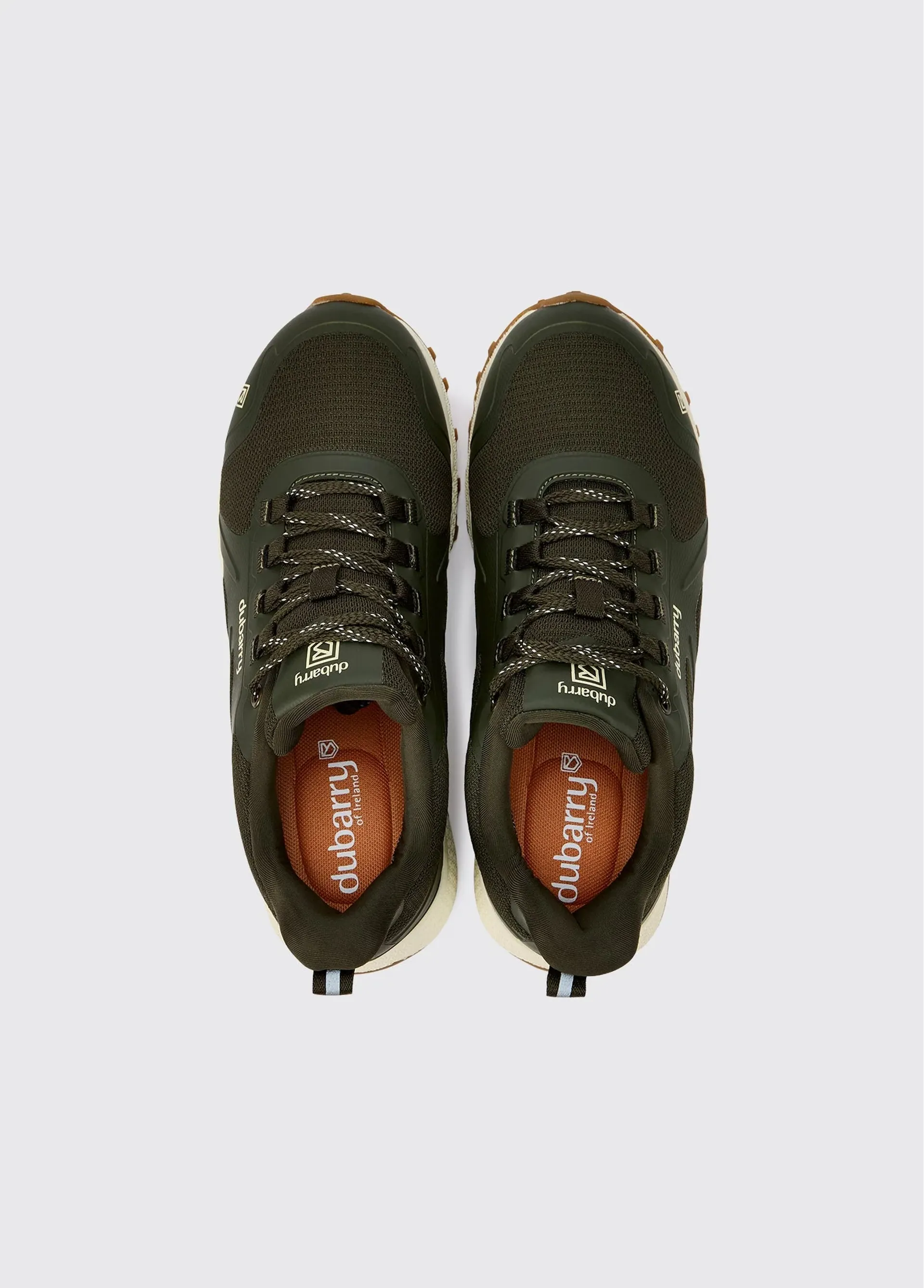 Footwear for all terrain, all year round, the Dubarry Curragh trainers are an invaluable addition to your outdoor wardrobe. A robust, water-repellent and easy-to-clean upper fabric has a fully waterproof lining to keep feet dry all day. The sole’s tread pattern gives outstanding stability on slippery surfaces while reducing the build-up of mud and gravel. Lightweight flexible midsoles offer superior shock absorption, and all-day comfort. From yard jobs and gardening to serious walking, these are reliable, durable great looking trainers.
