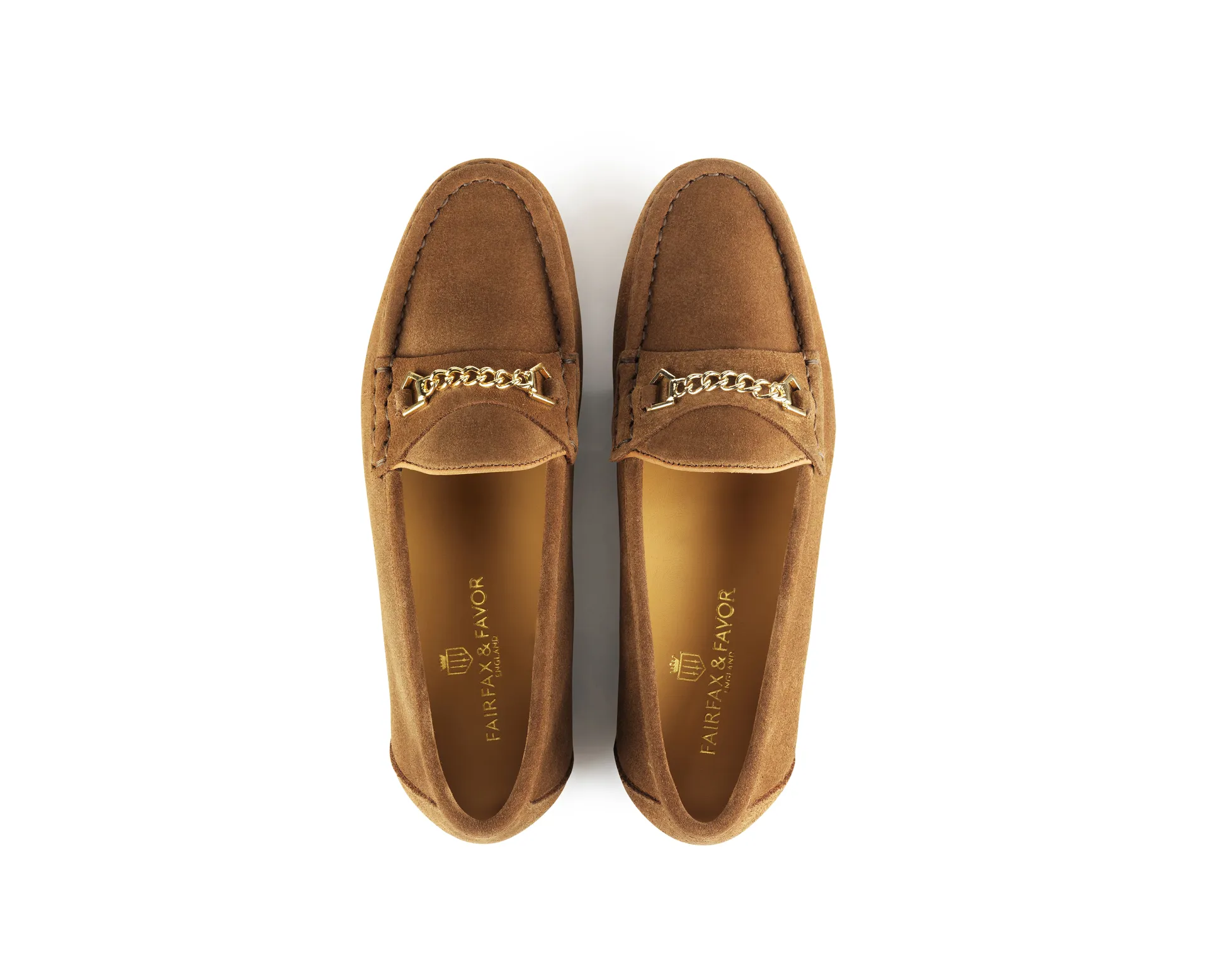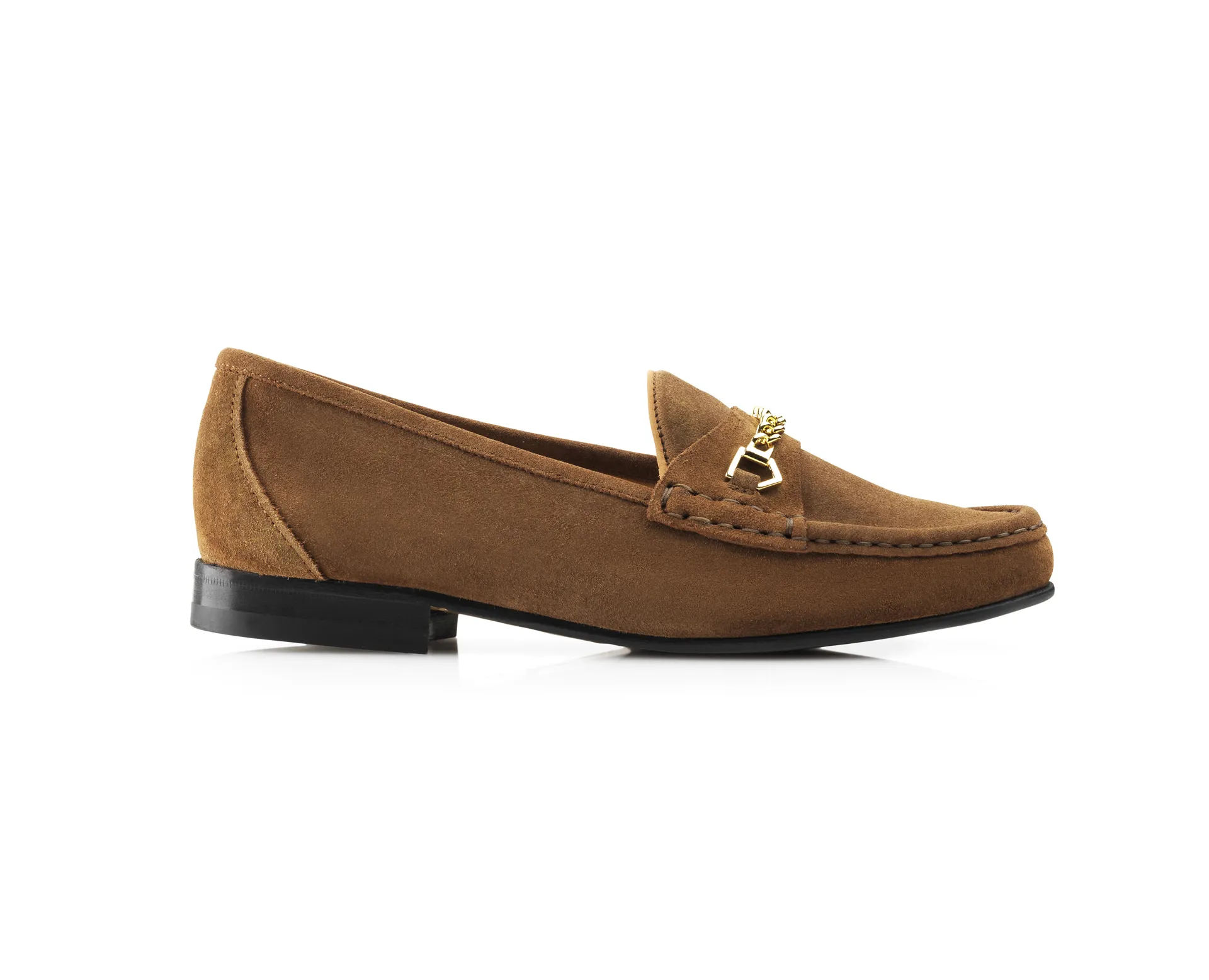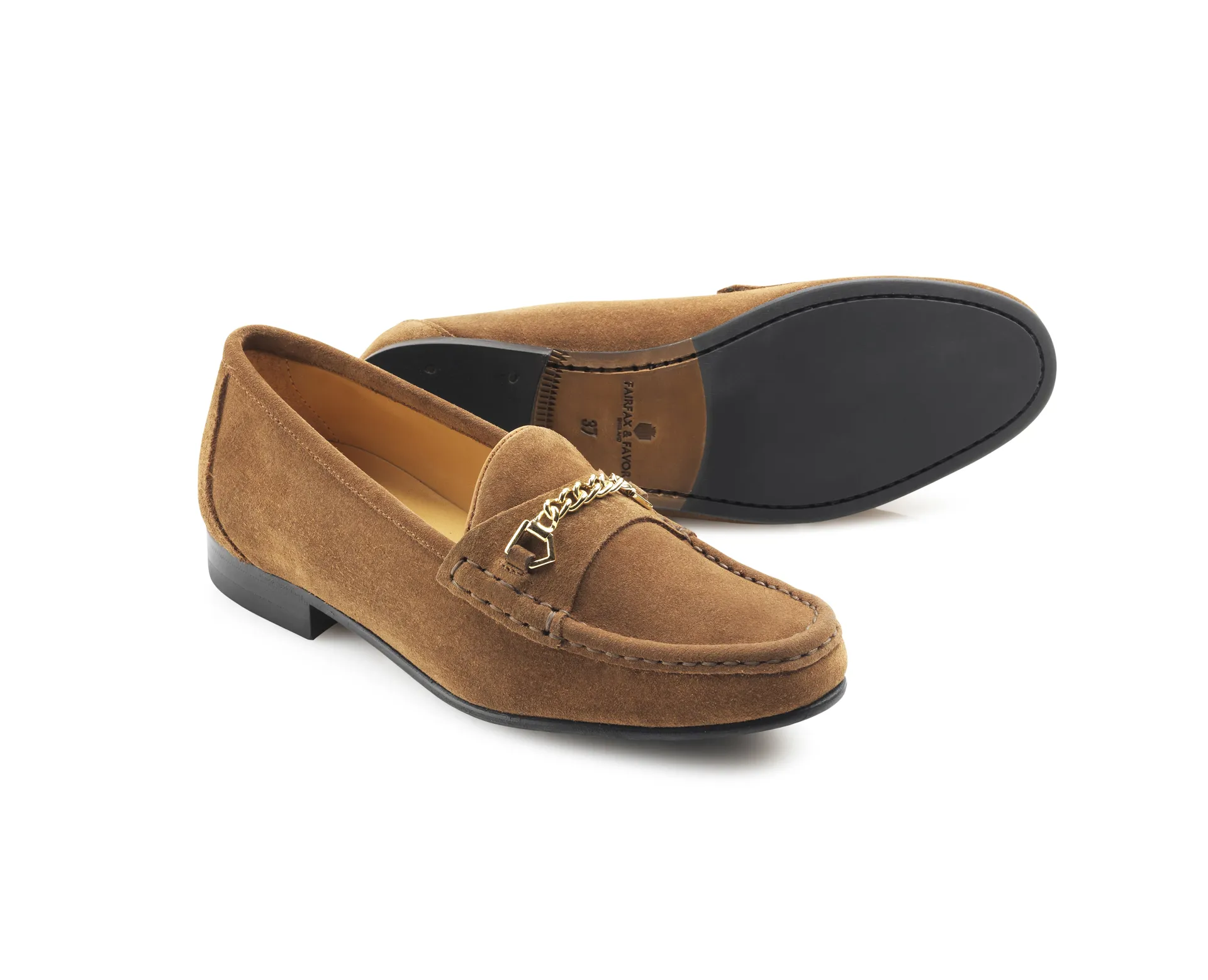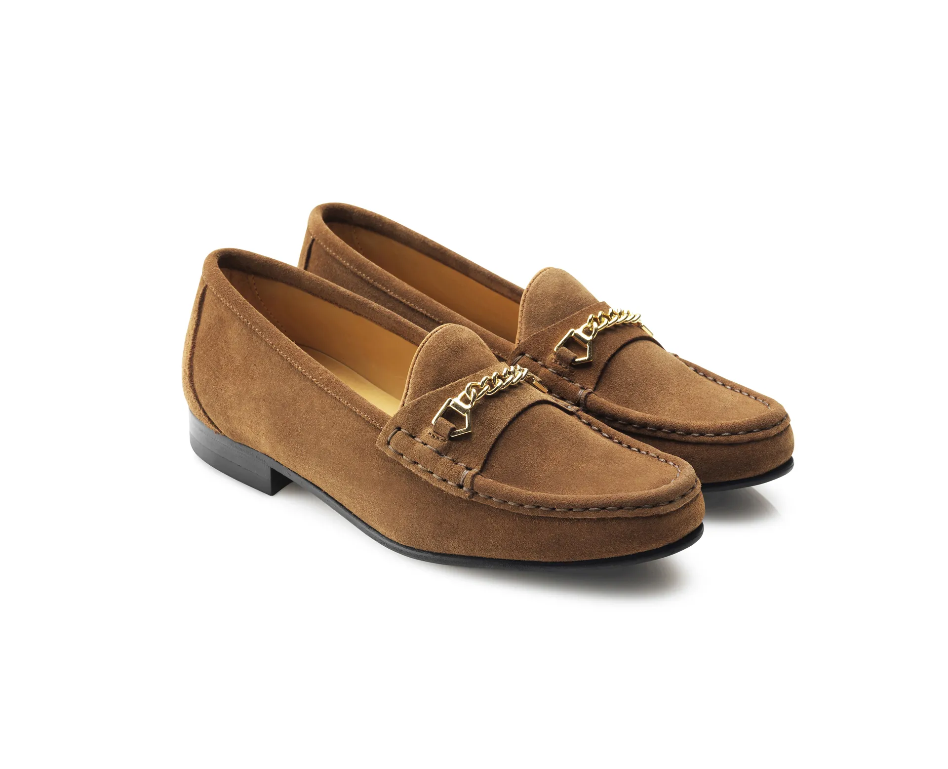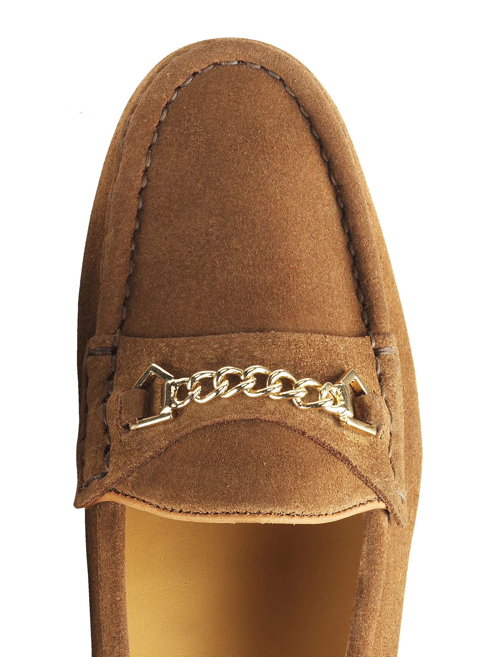 From daytime desk to drinks at dusk, just add an Apsley! Tailored in the finest suede and finished with an elegant gold chain, this heritage loafer is the go-to shoe your everyday uniform has been waiting for. Style it with skinny jeans and a blazer for a put-together look fit for meetings and meet-ups alike.