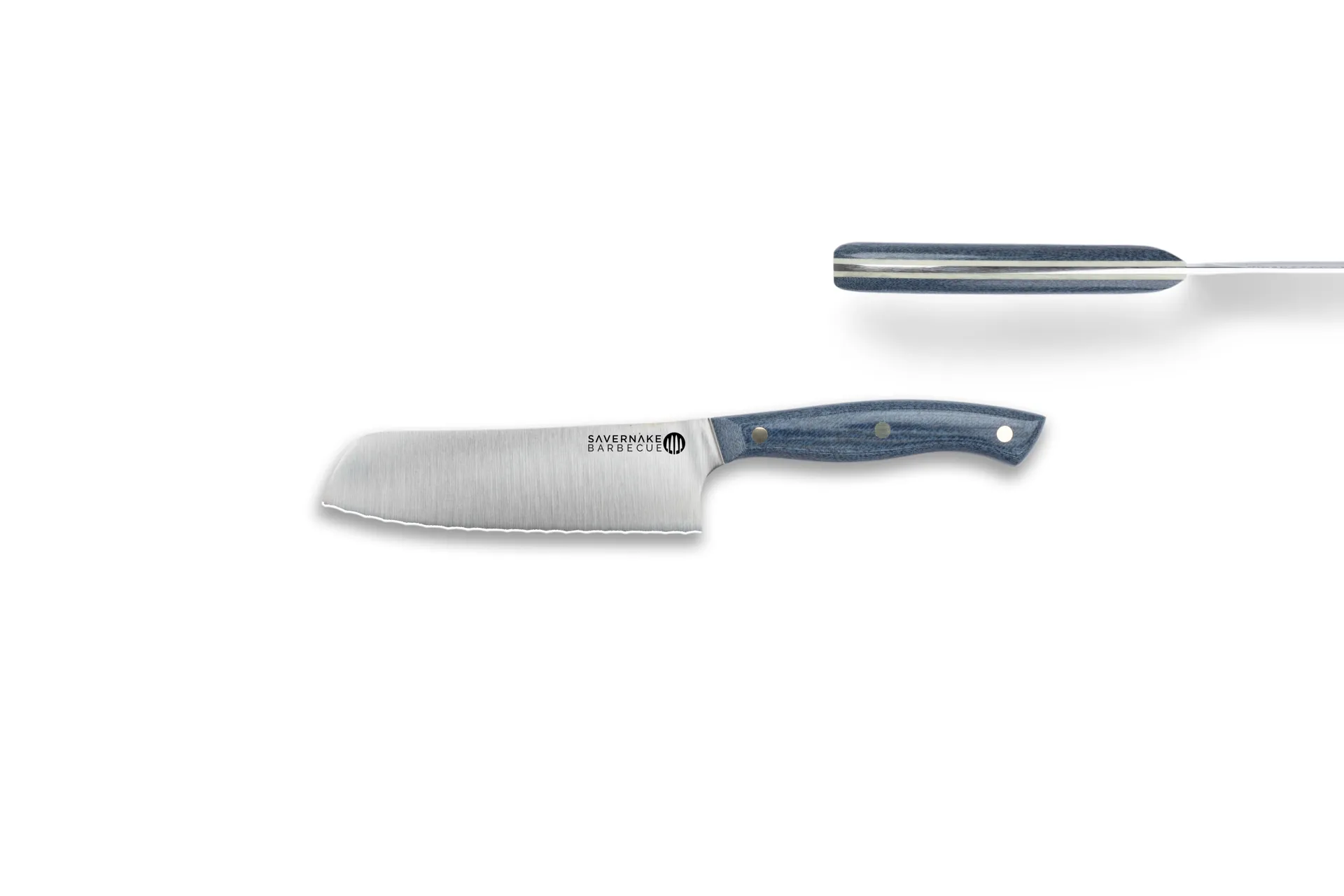 Write a review for Savernake Serrated Nakiri Denim Micarta/White