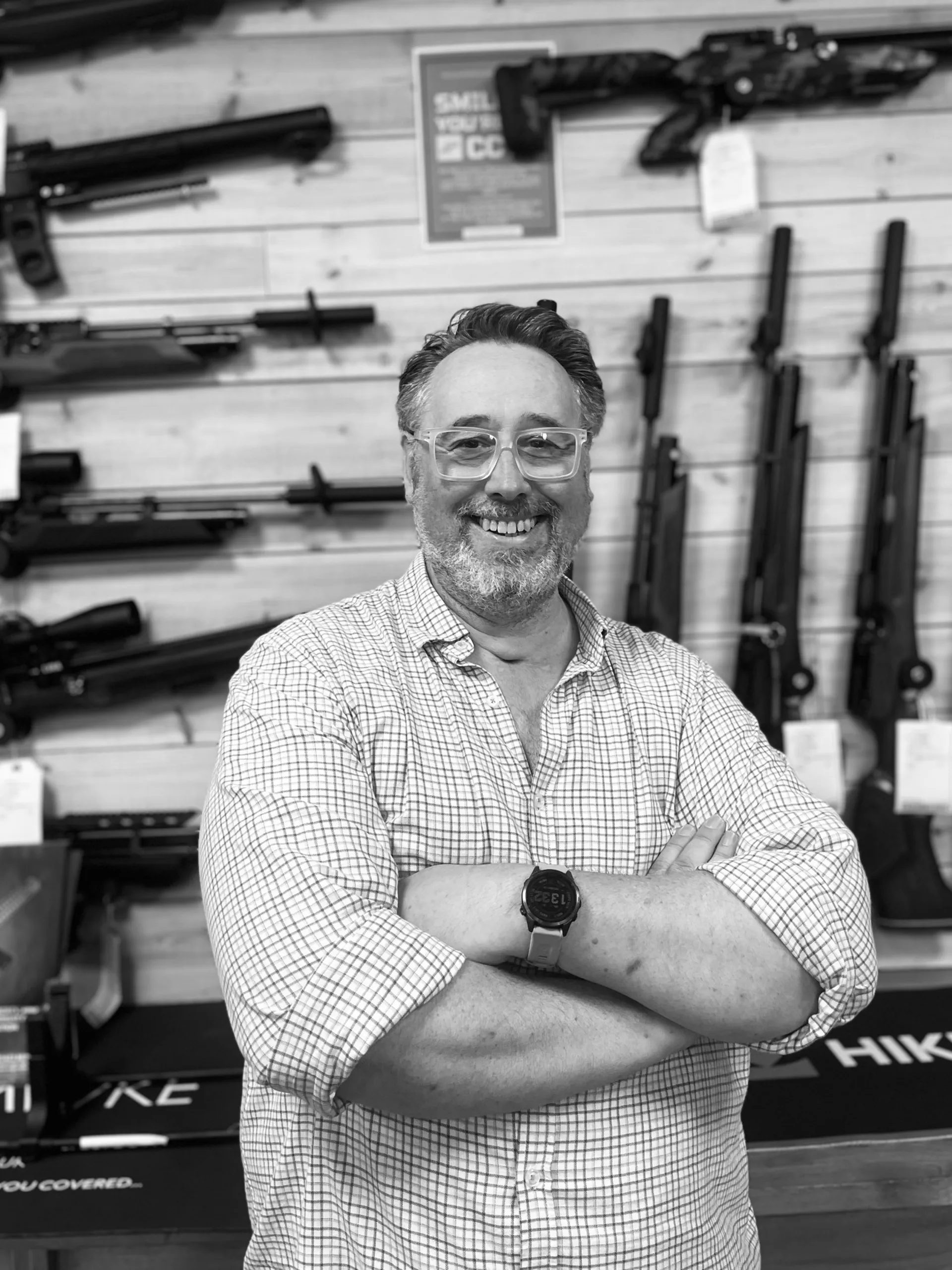 Mark - I enjoy using my airgun to catch rats and rabbits in the fields. I'm also found shooting clays and targets. I've been at the shop for over 15 years so can help with any enquiries, particularly relating to guns, night vision and scopes. High grade target shooter and professional nerd!